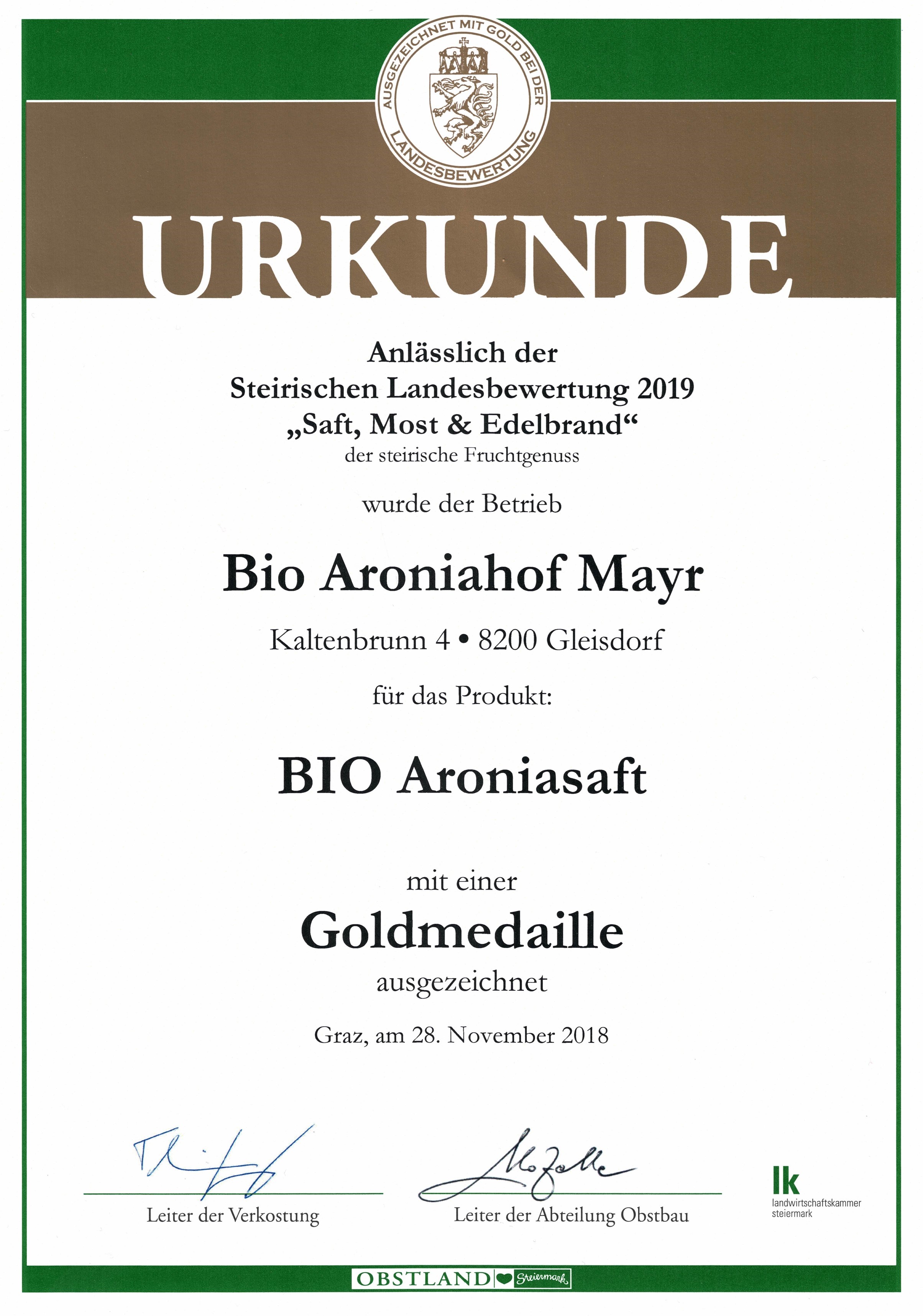 dürfen wir voller Stolz bekannt geben, dass wir für unsere BIO Aroniasäfte mit einer